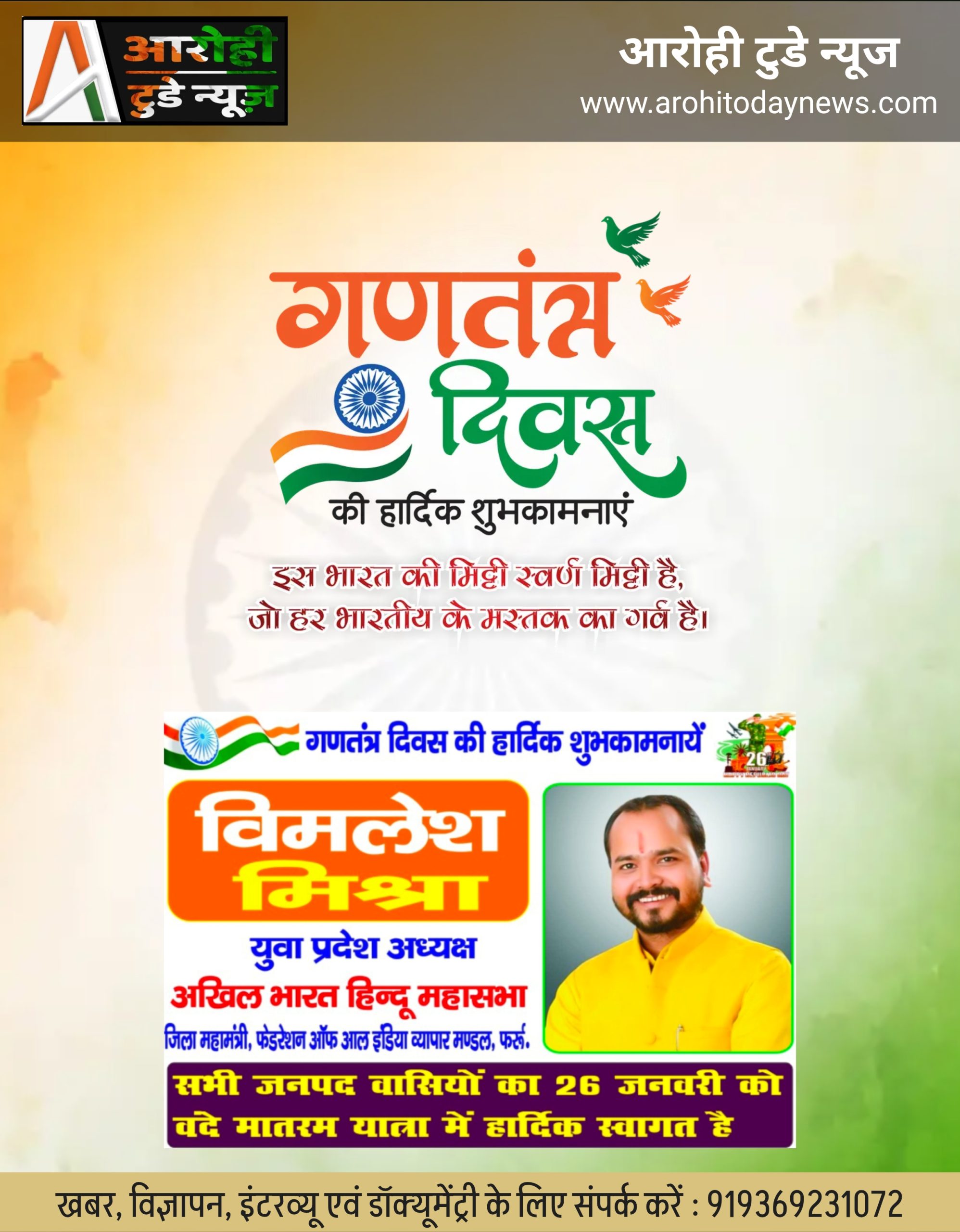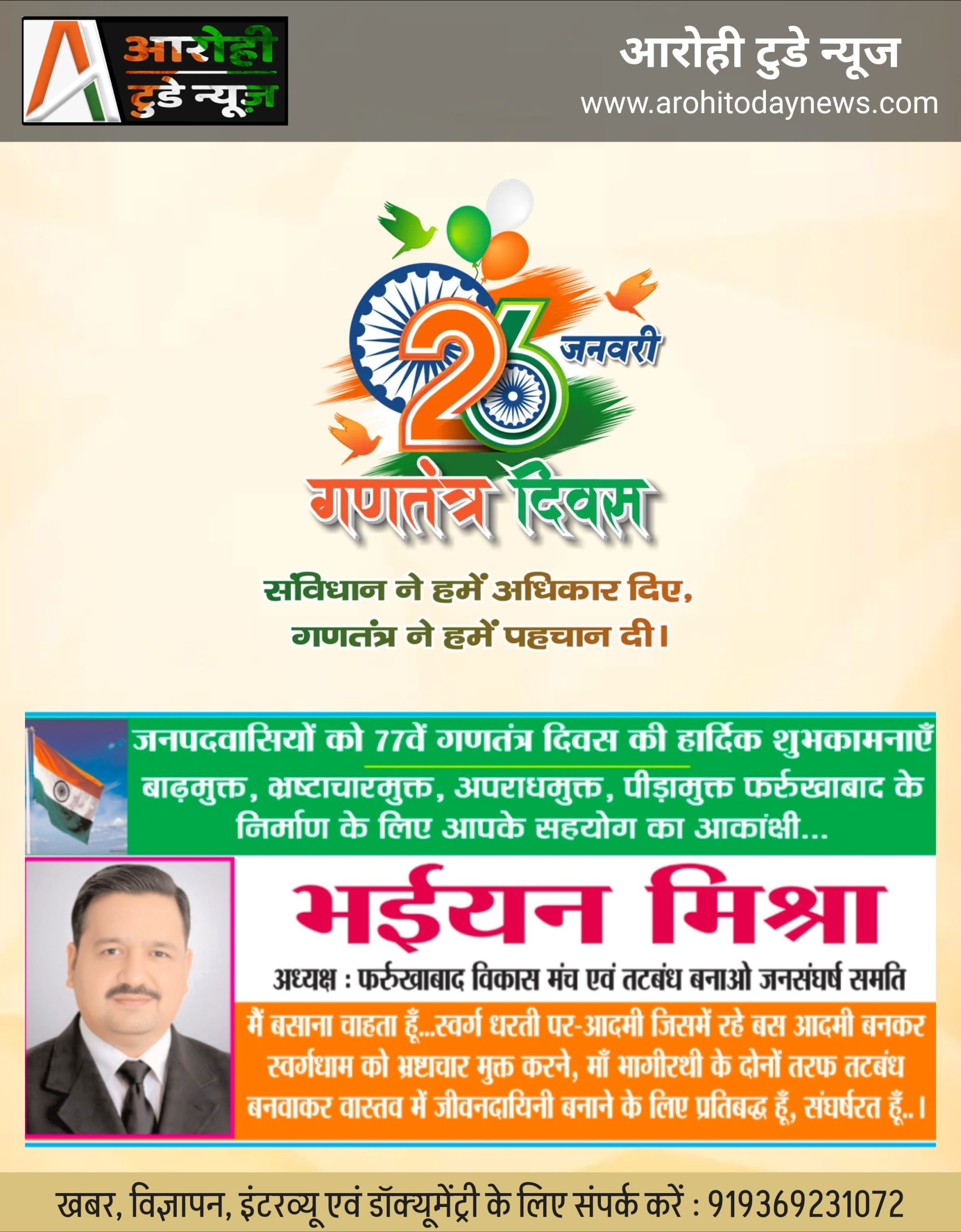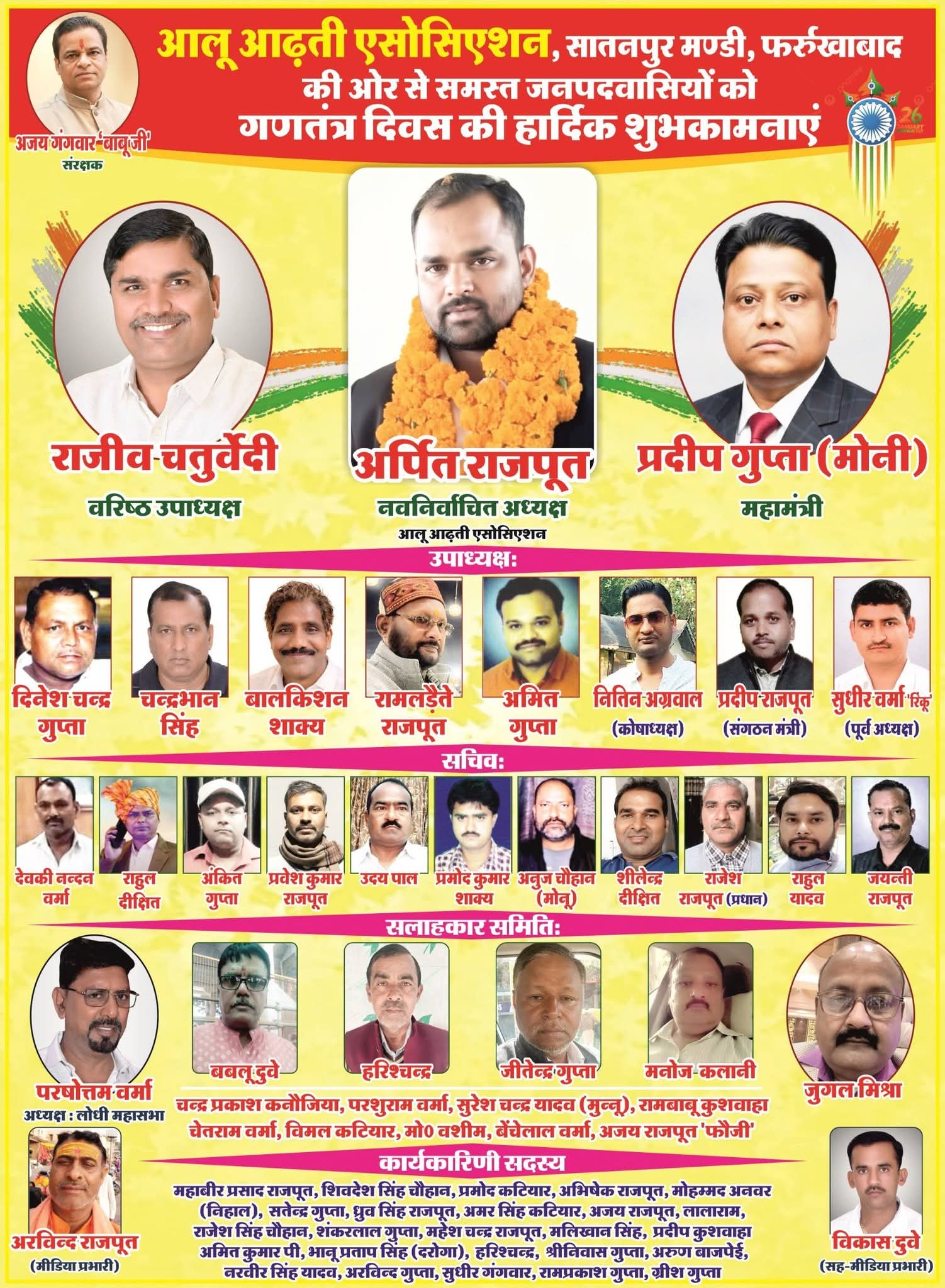 फर्रुखाबाद, आरोही टुडे न्यूज, आलोक शुक्ला की रिपोर्ट – आज गणतंत्र दिवस का पर्व शहर कांग्रेस कमेटी कैंप कार्यालय पर हर्षोल्लास के साथ मनाया गया इस अवसर पर शहर कांग्रेस कमेटी अध्यक्ष अंकुर मिश्रा एडवोकेट ने झंडारोहण किया उसके उपरांत राष्ट्रगान गाकर भारत के संविधान को बचाने का संकल्प लिया और वरिष्ठ कांग्रेस जन ने अपने विचार व्यक्त किए l