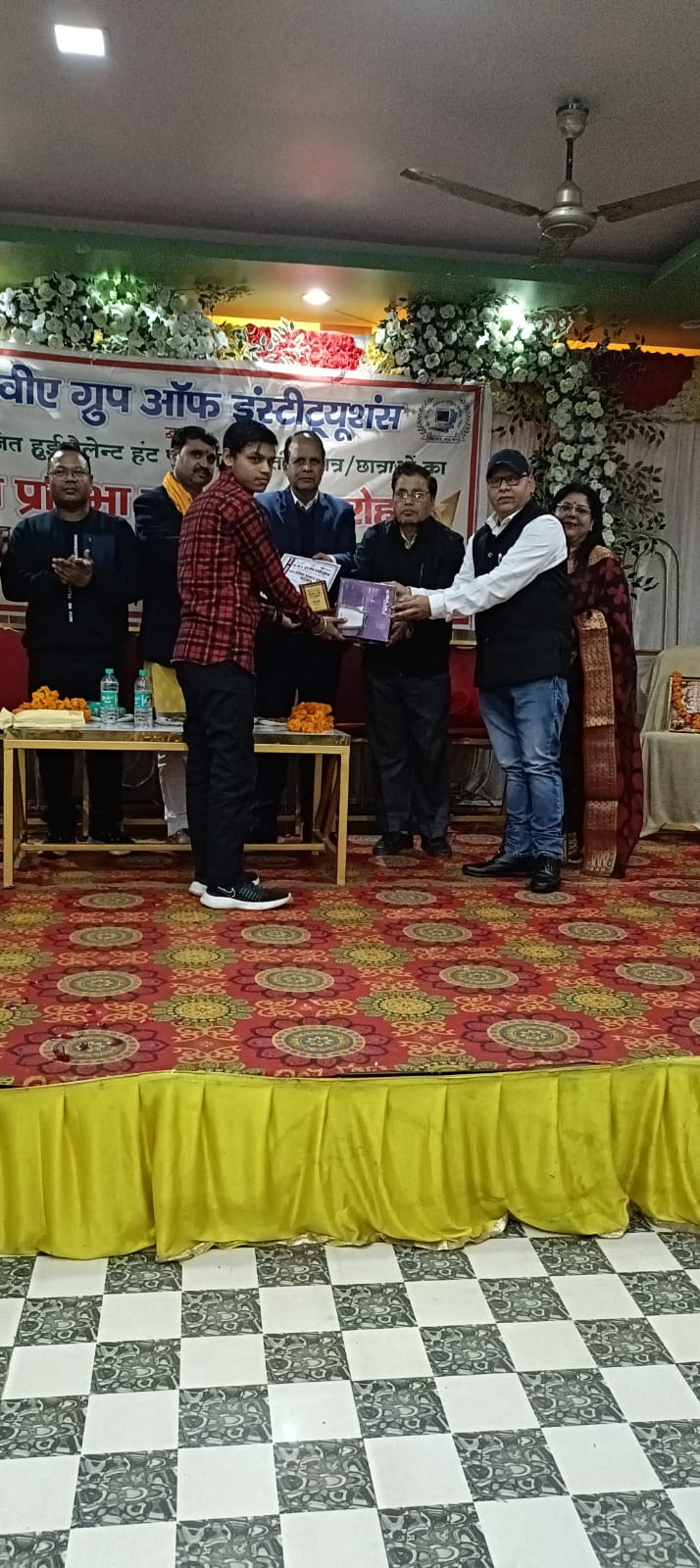 फर्रुखाबाद, आरोही टुडे न्यूज, आलोक शुक्ला की रिपोर्ट – आज जीवीए ग्रुप ऑफ इंस्टीट्यूट के द्वारा आयोजित छात्र प्रतिभा सम्मान समारोह का आयोजन स्थित उत्सव गेस्ट हाउस में किया गया, जिसमें मुख्य अतिथि अपर जिलाधिकारी न्यायिक दिनेश कुमार जी रहे एवं विशिष्ट अतिथि डॉ प्रभात अवस्थी, श्वेता दुबे,शैलेन्द्र सिंह राठौर,राजेपुर महात्मा गांधी इंटर कॉलेज के प्रधानाचार्य अनिल सिंह एवं प्रवक्ता डॉ० मनोज चतुर्वेदी सहित विभिन्न लोग उपस्थित रहे इस अवसर पर जीवीए टैलेंट हंट एग्जाम में सफल छात्र छात्राओं को पुरस्कार दिया गया जिसमें सीनियर वर्ग में प्रथम पुरस्कार अक्षय बाजपेई द्वितीय पुरस्कार अनिकेत राजपूत एवं तृतीय पुरस्कार सोयल श्रीवास्तव को दिया गया,अतः जूनियर वर्ग में प्रथम पुरस्कार वैष्णवी,द्वितीय रचित एवं तृतीय पुरस्कार अनिकेत को दिया गया साथ ही टॉप टेन पुरस्कार सहित सांत्वना पुरस्कार भी बच्चों को प्रदान किए गए,कार्यक्रम में सांस्कृतिक एवं देश भक्ति का रंग देखते बन रहा था जीवीए ग्रुप ऑफ इंस्टीट्यूट के छात्र छात्राओं ने ऑपरेशन सिंदूर के एवं बैक बैंचर्स नाटक का मंचन किया जिसमें वहां उपस्थित लोगों ने बहुत प्रशंसा की कार्यक्रम के मुख्य अतिथि अपर जिलाधिकारी न्यायिक दिनेश कुमार ने जीवीए ग्रुप को वर्तमान में छात्रों का हितैषी बताते हुए कहा कि वास्तव में जीवीए टैलेंट हंट एग्जाम के द्वारा निदेशक विपिन अवस्थी ने छात्रों के अंदर छिपी हुई प्रतिभाओं को निखारने का काम किया है ।