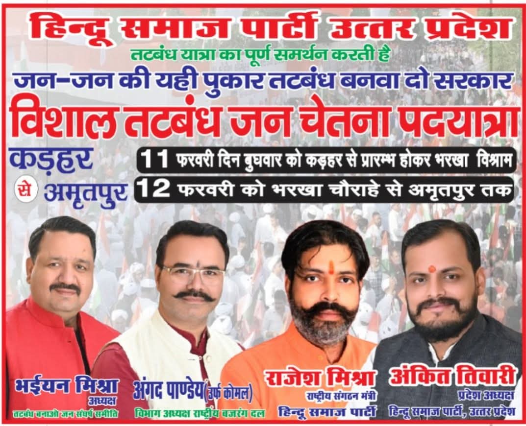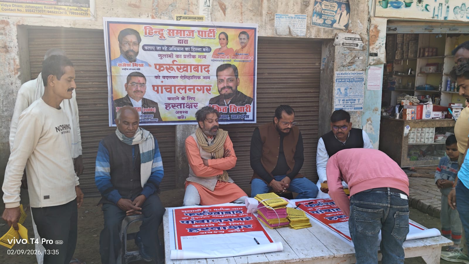 फर्रुखाबाद, आरोही टुडे न्यूज, आलोक शुक्ला की रिपोर्ट – जनपद का नाम बदलकर पांचालनगर करने का हिन्दू समाज पार्टी का हस्ताक्षर अभियान लगातार जारी है, आज मोहम्मदाबाद में हस्ताक्षर अभियान चलाया गया, जिसमें आम जनमानस ने हस्ताक्षर किये, प्रदेश अध्यक्ष अंकित तिवारी ने कहा की हस्ताक्षर अभियान को जनपद का व्यापक समर्थन मिल रहा है इससे ये संभावना प्रबल होती जा रही है की जनपद का नाम अवश्य बदलेगा।